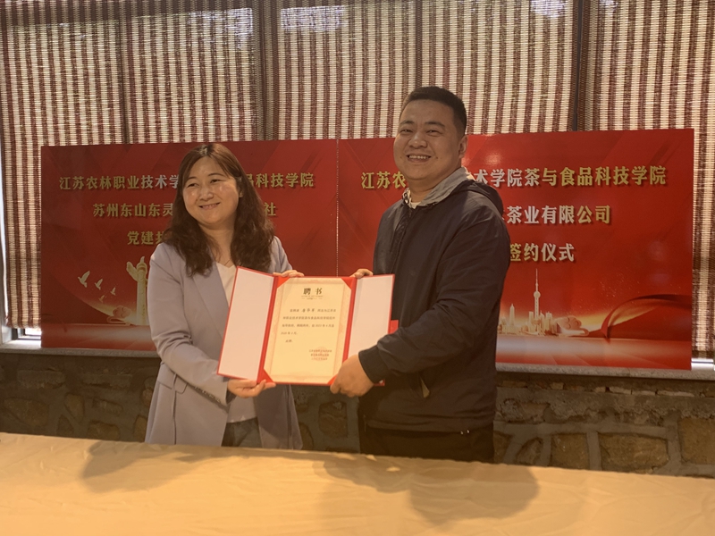 签约仪式中,江苏农林职业技术学院茶与食品科技学院和苏州吴地集珍茶业有限公司、苏州东山东灵茶叶专业合作社,分别开展党建共建签约,顾晓军、唐华军、施跃文3位碧螺春制茶传承大师被聘为学院校外导师。“首次和碧螺春基地合作共建。”据茶与食品科技学院党总支副书记嵇怡表示,学院开设茶艺与茶文化、茶叶生产与加工技术等专业,校企合作促进学生实地了解碧螺春专业知识,传承非遗文化技艺,培养工匠精神,今后除了让学生实地体验外,还准备请导师走进学院开讲座。