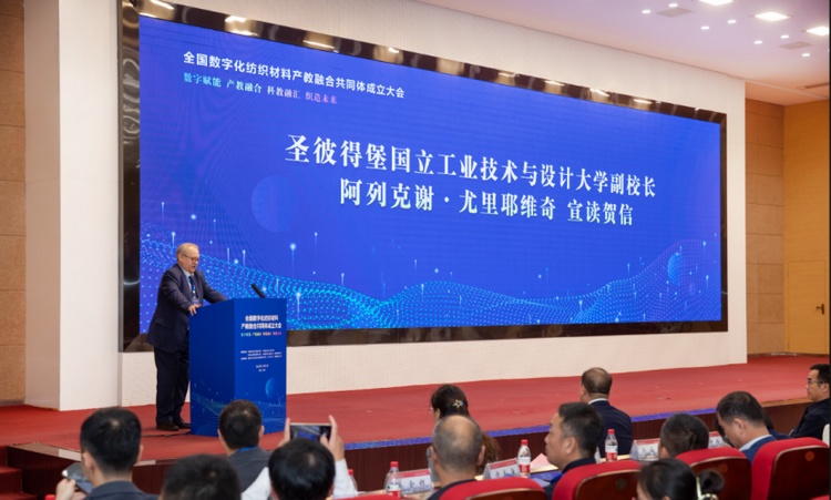 会上,俄罗斯圣彼得堡国立工业技术与设计大学副校长阿列克谢·尤里耶维奇宣读贺信,他表示,“我们对此充满信心,并深信这个共同体将为中国纺织工业的发展注入新的活力,推动数字化纺织材料的创新和应用。”