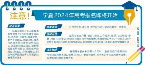 近日,自治区招生工作委员会办公室发布《宁夏回族自治区2024年普通高等学校招生考试报名办法》,明确2024年高考报名时间提前至11月1日至5日。